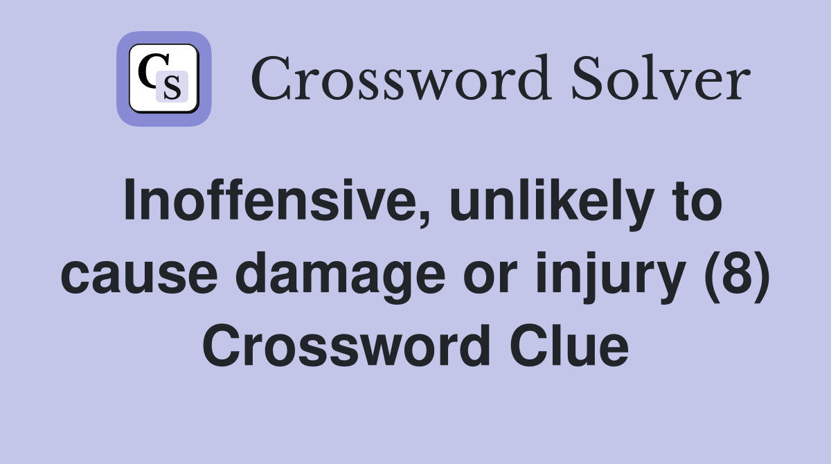 Inoffensive unlikely to cause damage or injury (8) Crossword Clue