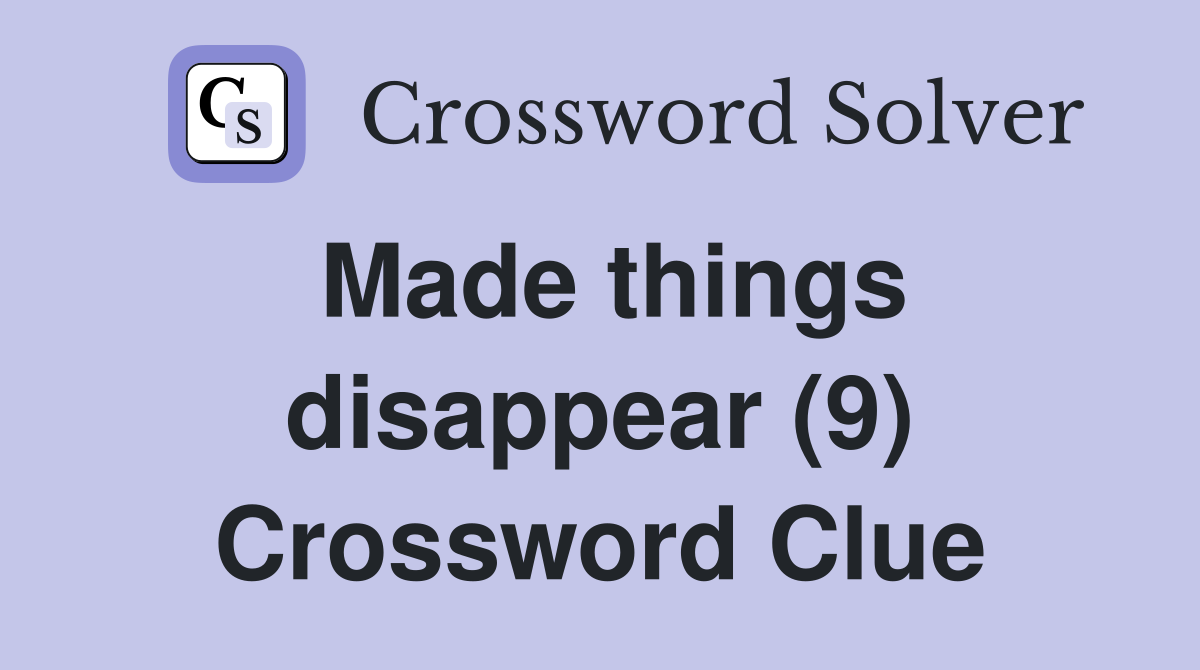 Made things disappear (9) Crossword Clue Answers Crossword Solver