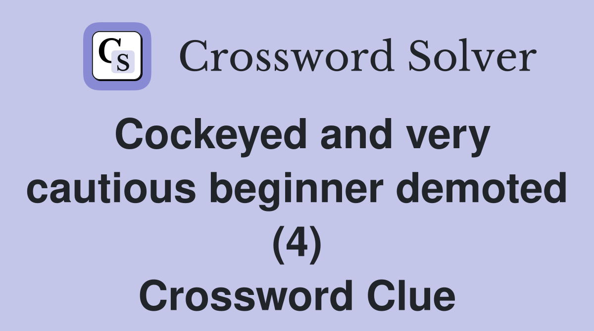 Cockeyed and very cautious beginner demoted (4) Crossword Clue