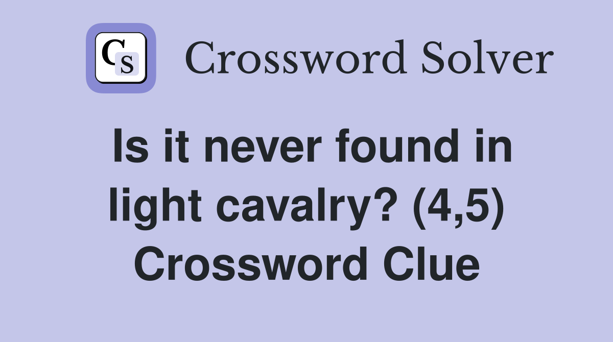 Is it never found in light cavalry? (4 5) Crossword Clue Answers