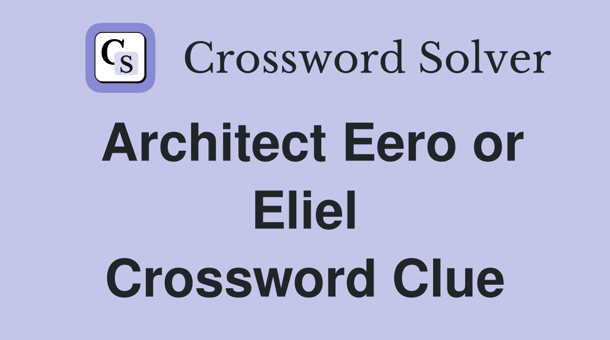 Architect Eero or Eliel Crossword Clue Answers Crossword Solver