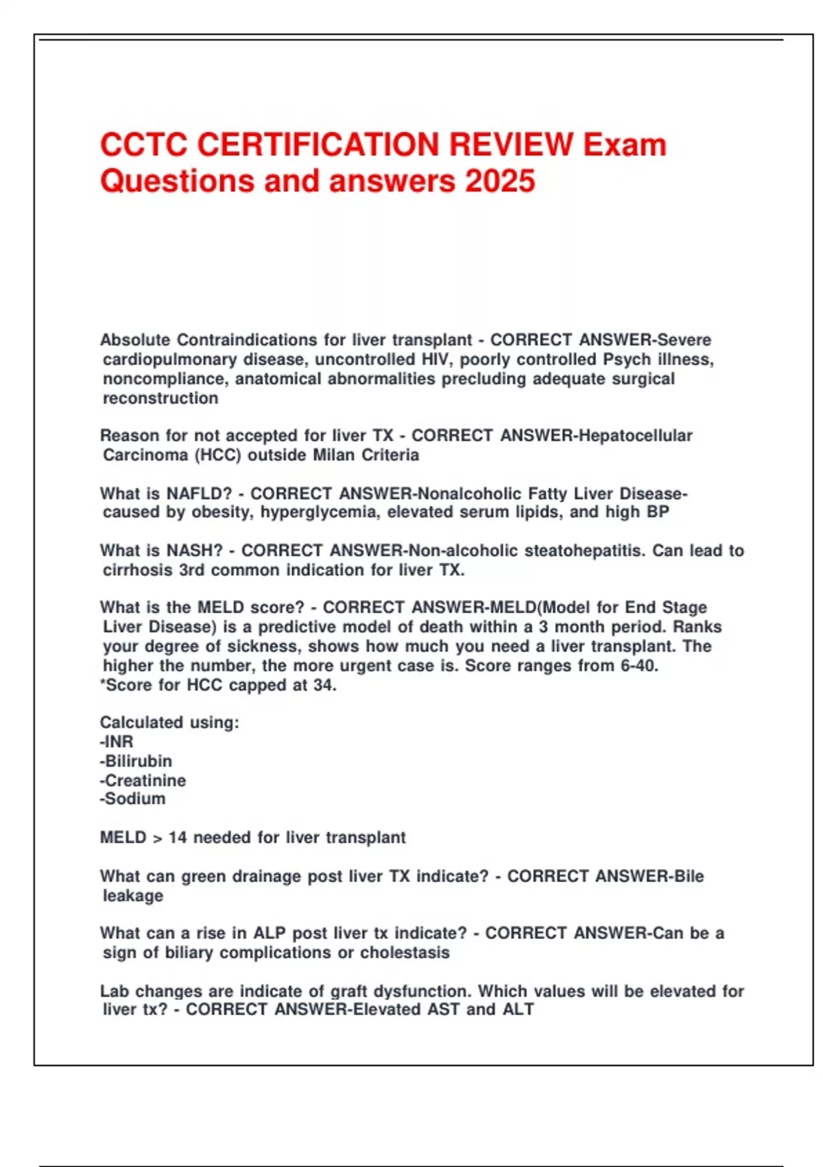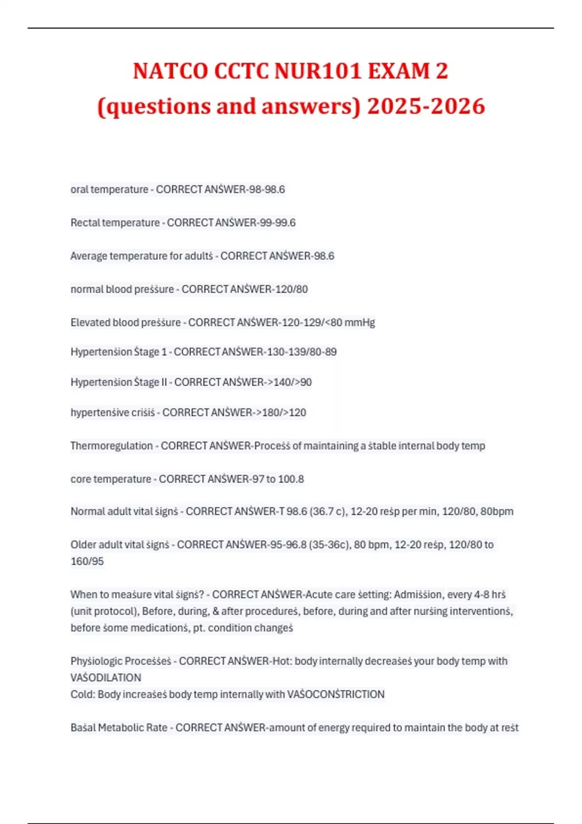 NATCO CCTC NUR101 EXAM 2 (questions and answers) NATCO CCTC Stuvia US