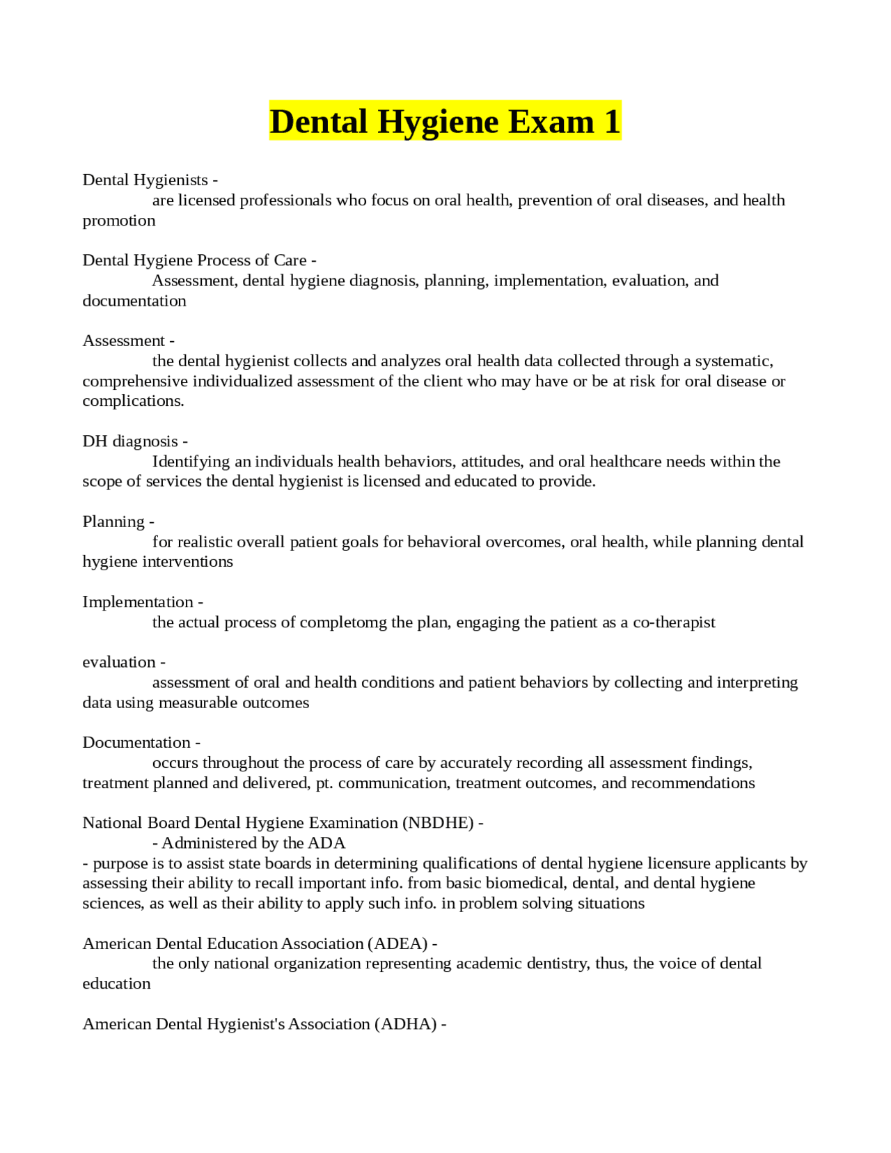 Dental Hygiene Exam 1 Exams Dentistry Docsity