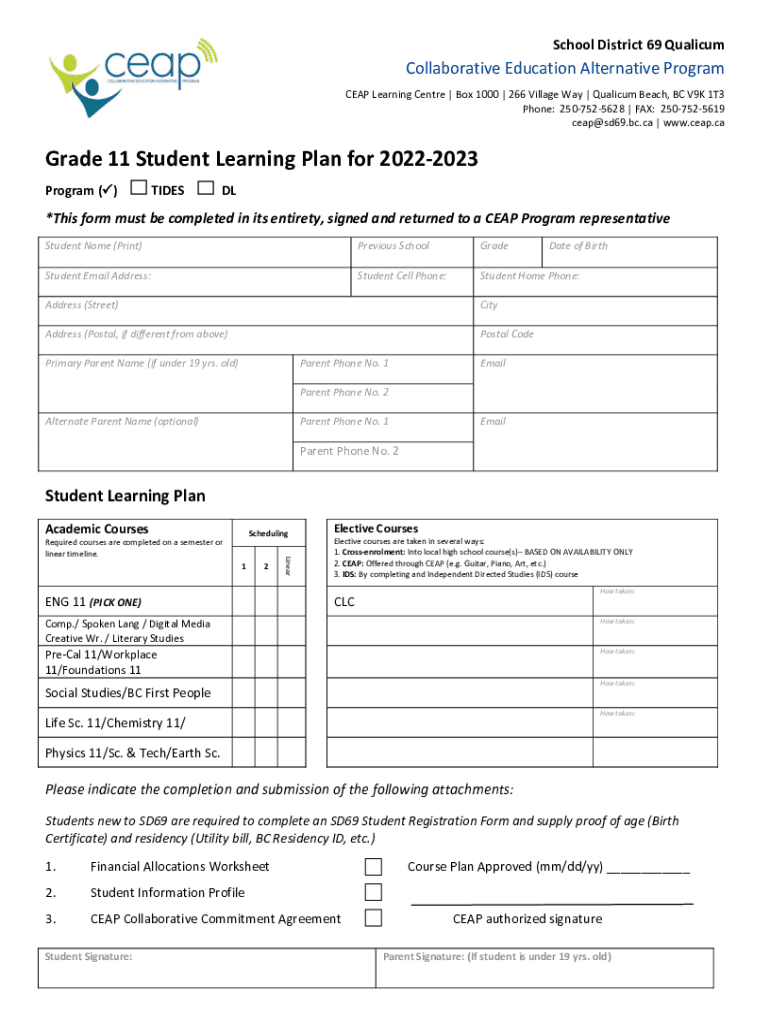 Fillable Online CEAP Learning Centre Box 1000 266 Village Way Qualicum