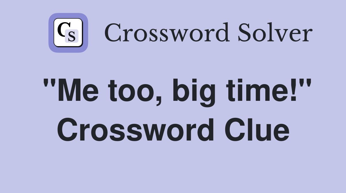 quot Me too big time quot Crossword Clue Answers Crossword Solver
