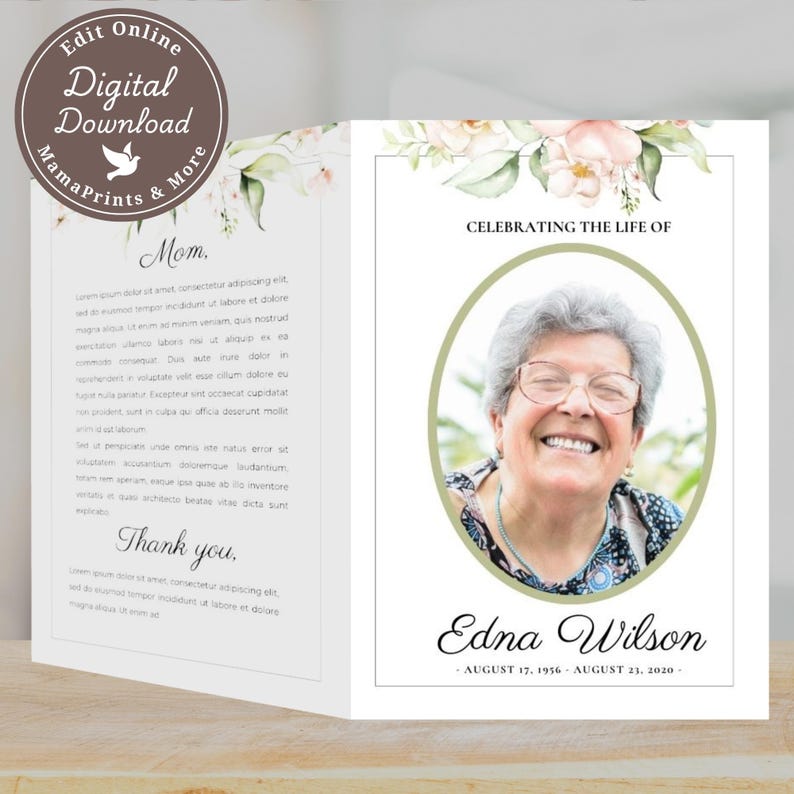 Editable Blush Floral Funeral Program Template Modern Celebration of