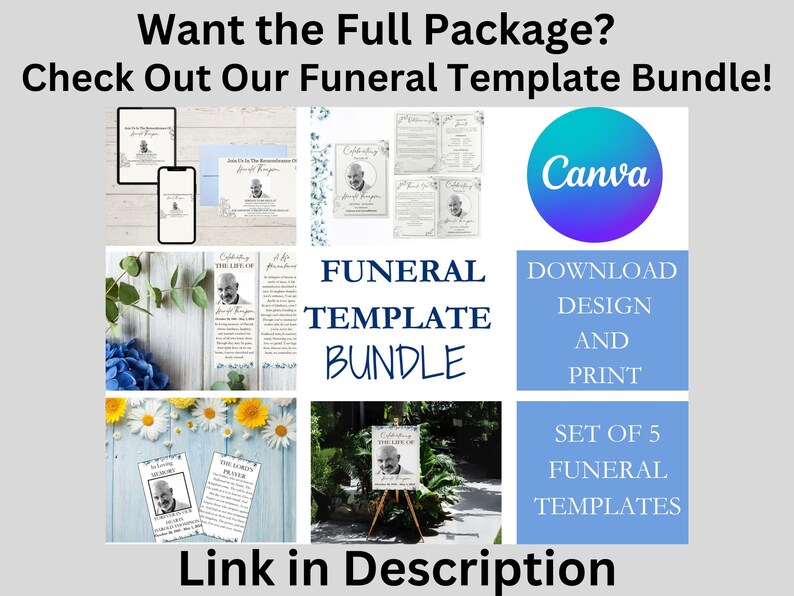 Editable Funeral Program Template Canva Celebration of Life Funeral