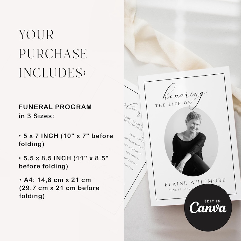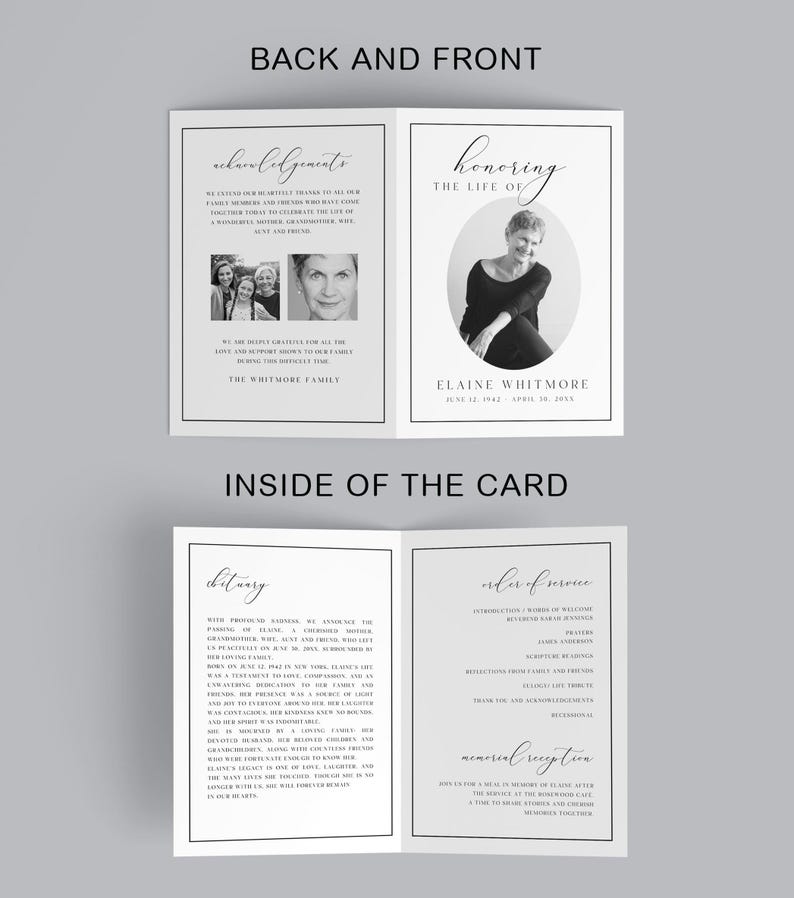 Editable Minimalist Funeral Program Printable DIY Memorial Template