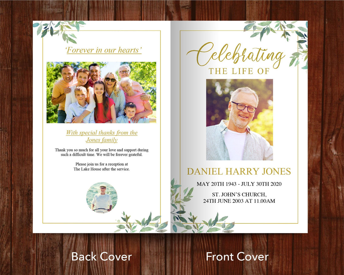 Funeral Program Template With Green Leaf Design for Men Etsy UK