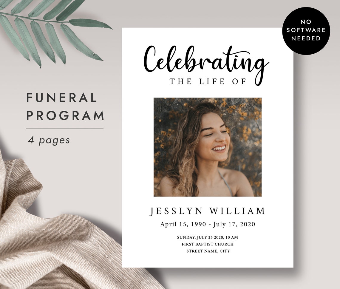 Funeral Program Template Celebration of Life Program Funeral Etsy