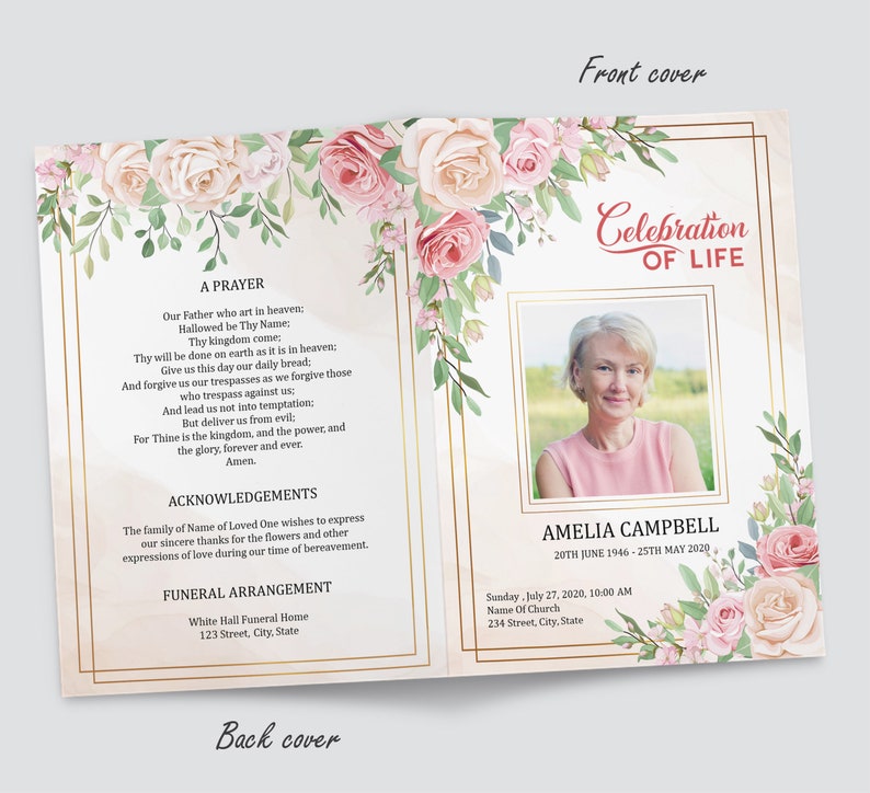 Celebration of Life Template 4 Page Funeral Program Template for Women