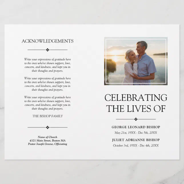 Minimal Joint Celebration of Life Funeral Program Zazzle