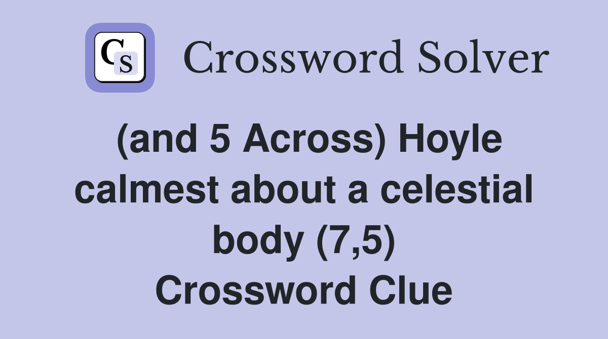 (and 5 Across) Hoyle calmest about a celestial body (7 5) Crossword