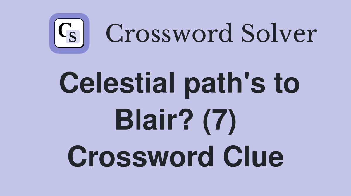 Celestial path s to Blair? (7) Crossword Clue Answers Crossword Solver