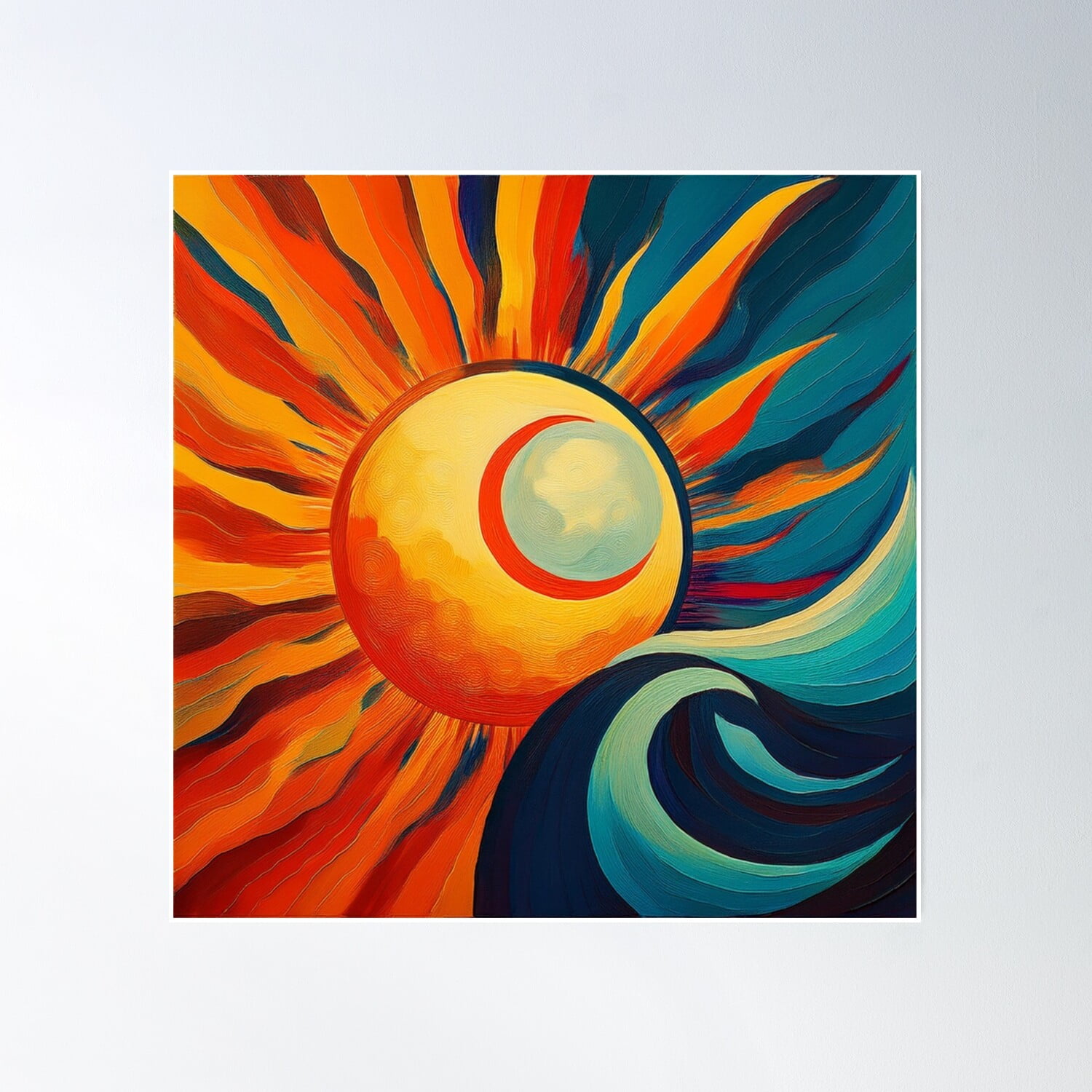 Abstract Sun And Moon Celestial Nature Design Poster Wall Art Modern