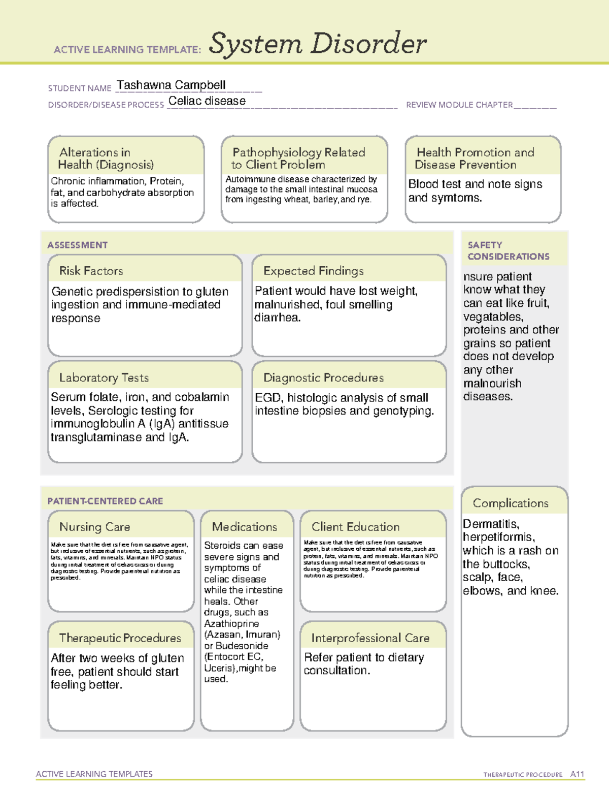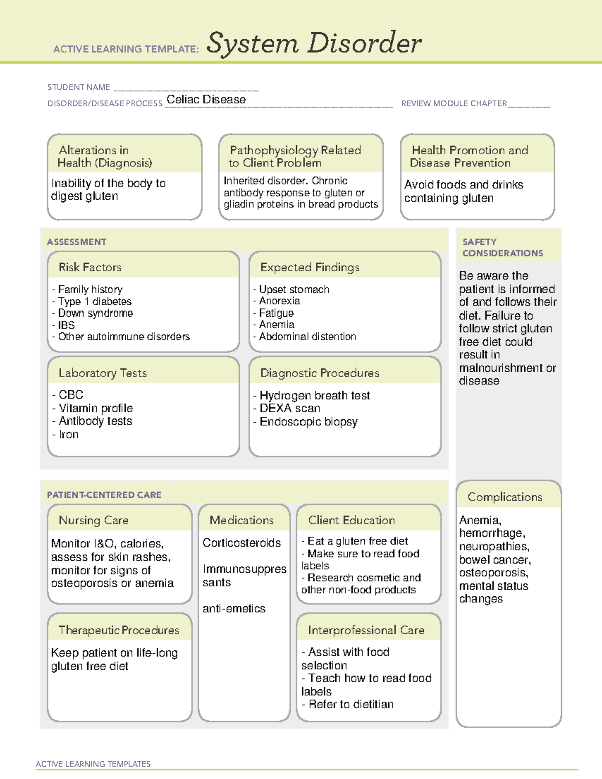 Celiac DIsease ALT ACTIVE LEARNING TEMPLATES System Disorder STUDENT