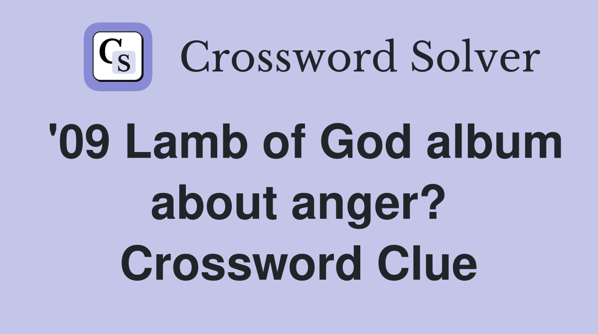 #39 09 Lamb of God album about anger? Crossword Clue Answers Crossword