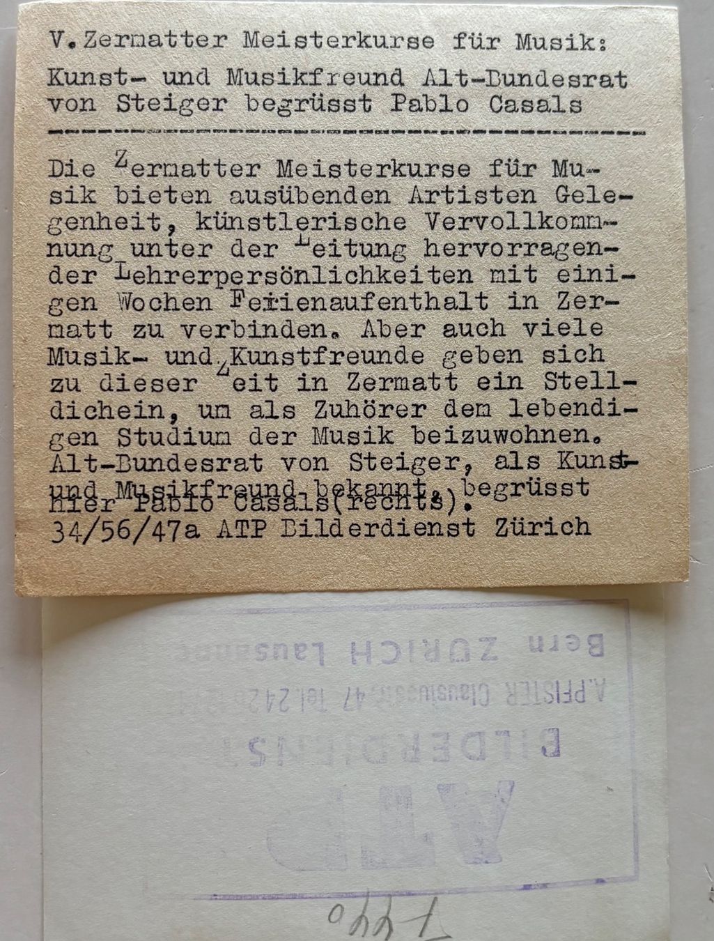 Zermatt Meisterkurse Pablo Casals Cellist 1956 (Gebraucht) in