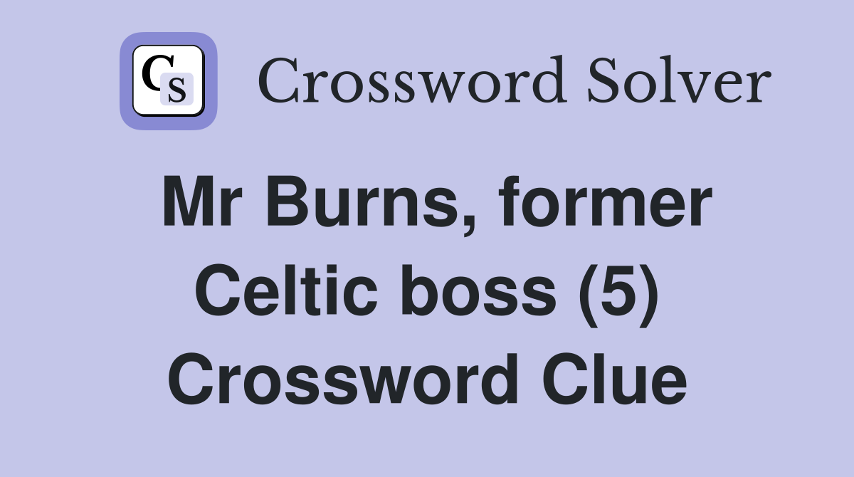 Mr Burns former Celtic boss (5) Crossword Clue Answers Crossword