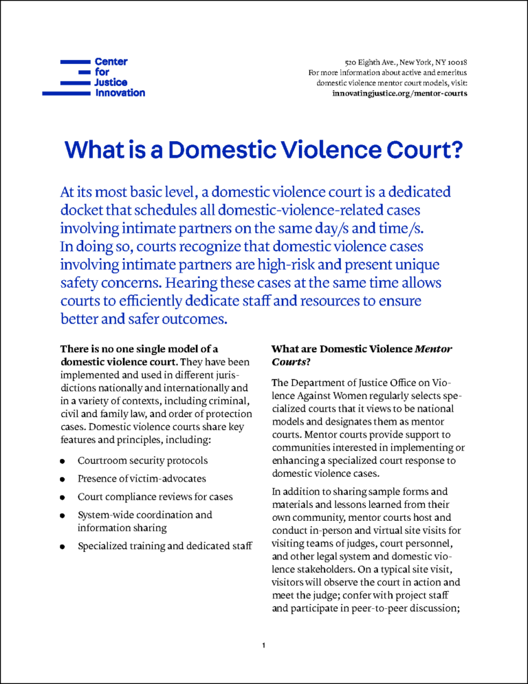 Fact Sheet: What is a Domestic Violence Court? Center for Justice