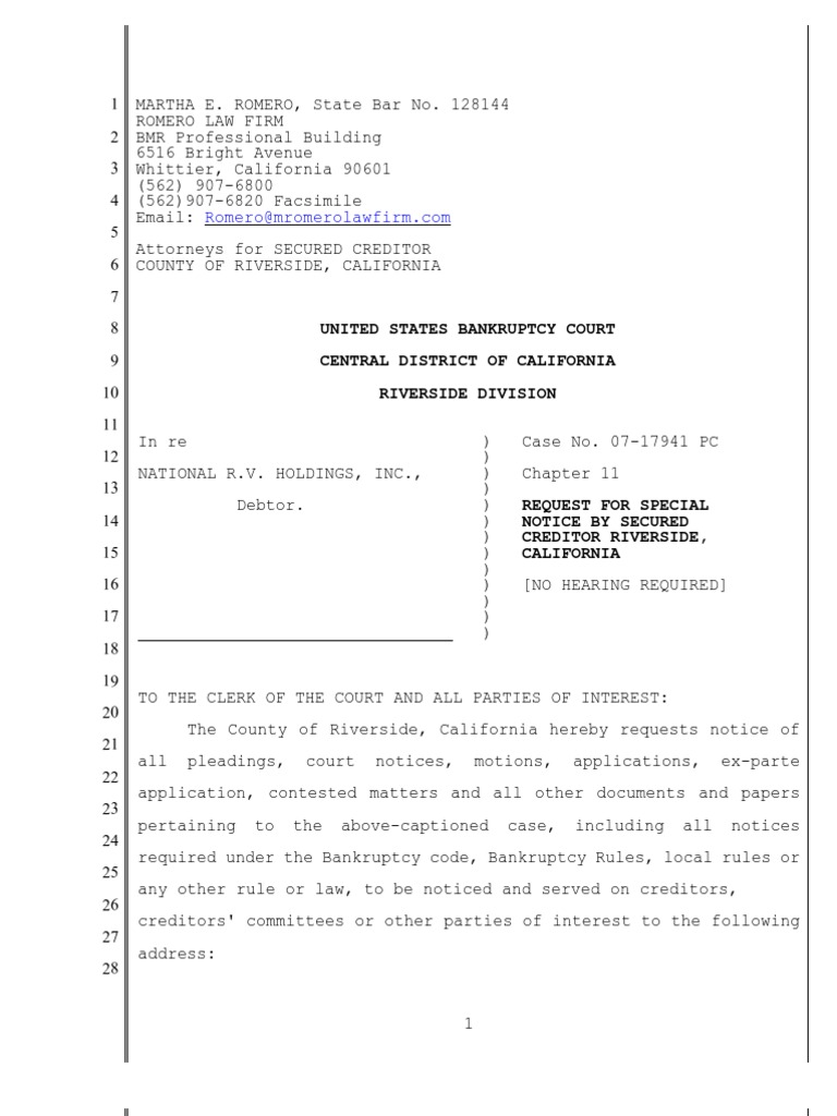 Bankruptcy Pleading: Central District of California Word Automation