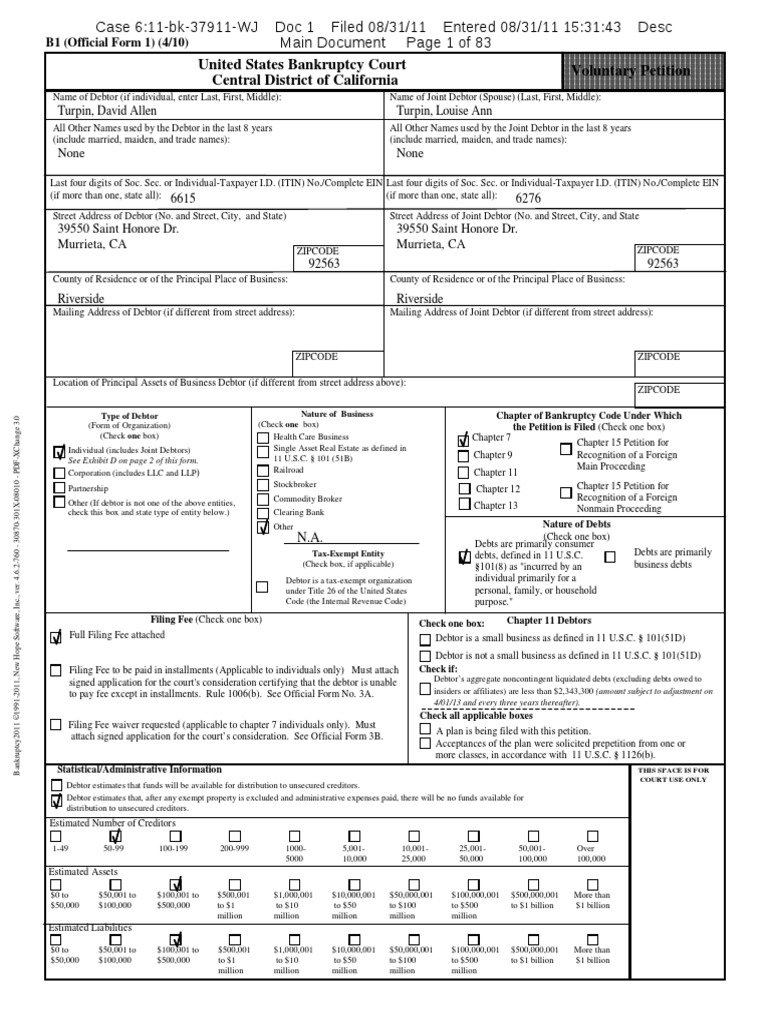 United States Bankruptcy Court Voluntary Petition District Form Fill