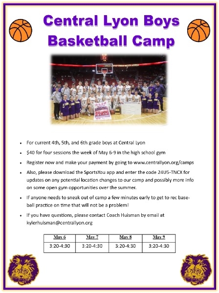 Central Lyon CSD 4th 6th Boys Basketball Camp