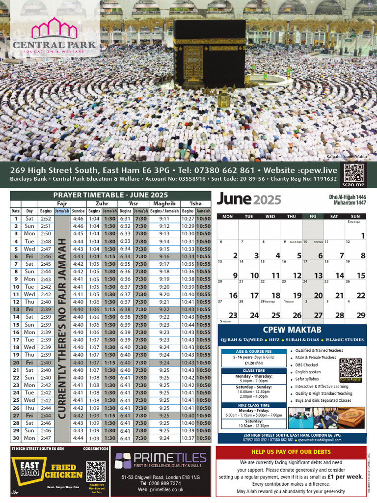 Central Park Calendar 2025 PDF Islamic Ethics Prayer