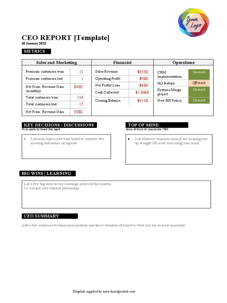 Ceo Board Report Template
