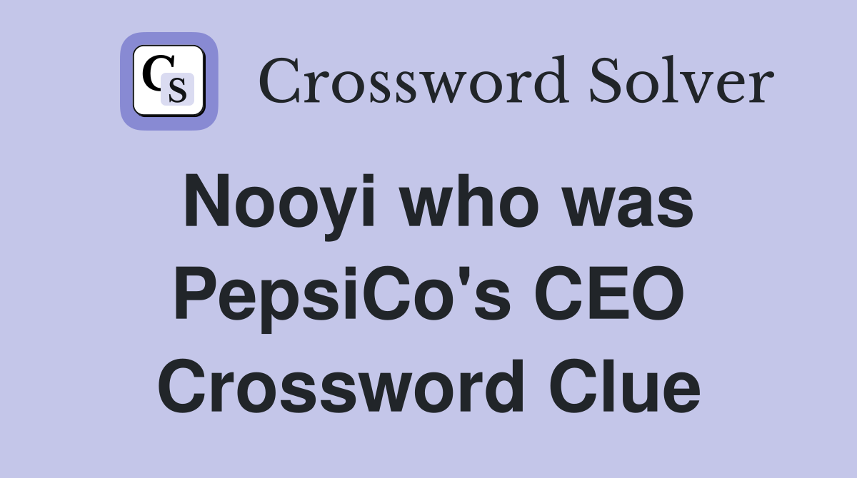 Nooyi who was PepsiCo #39 s CEO Crossword Clue Answers Crossword Solver