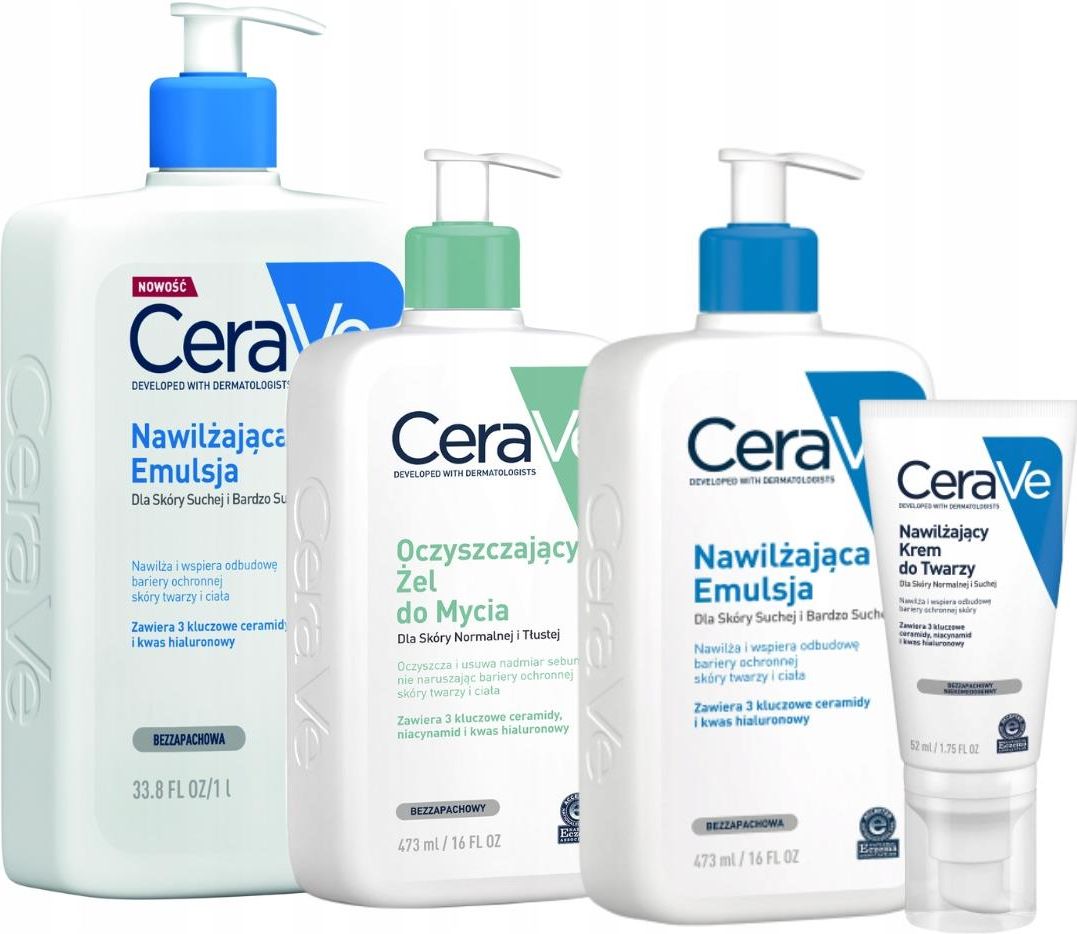 Cerave Limitowany Zestaw Emulsja 473ml Żel 473ml Krem Do Twarzy