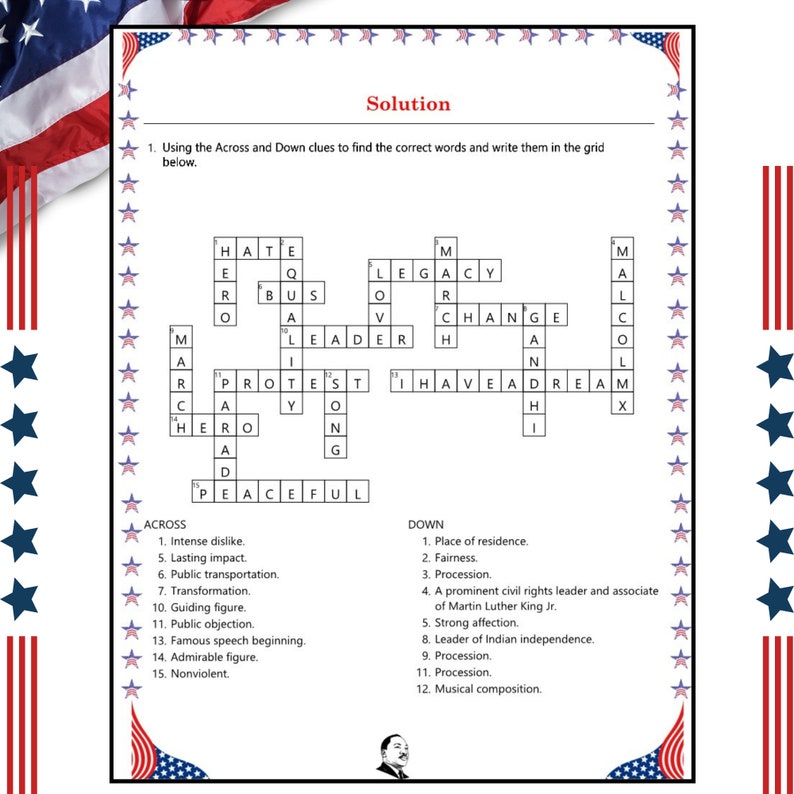 MLK Day Martin Luther King Jr Crossword Puzzle Vocabulary Activity No