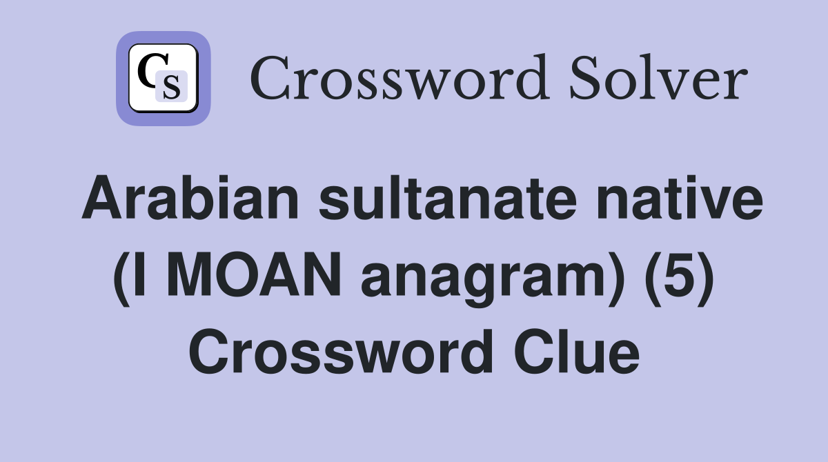 Arabian sultanate native (I MOAN anagram) (5) Crossword Clue Answers