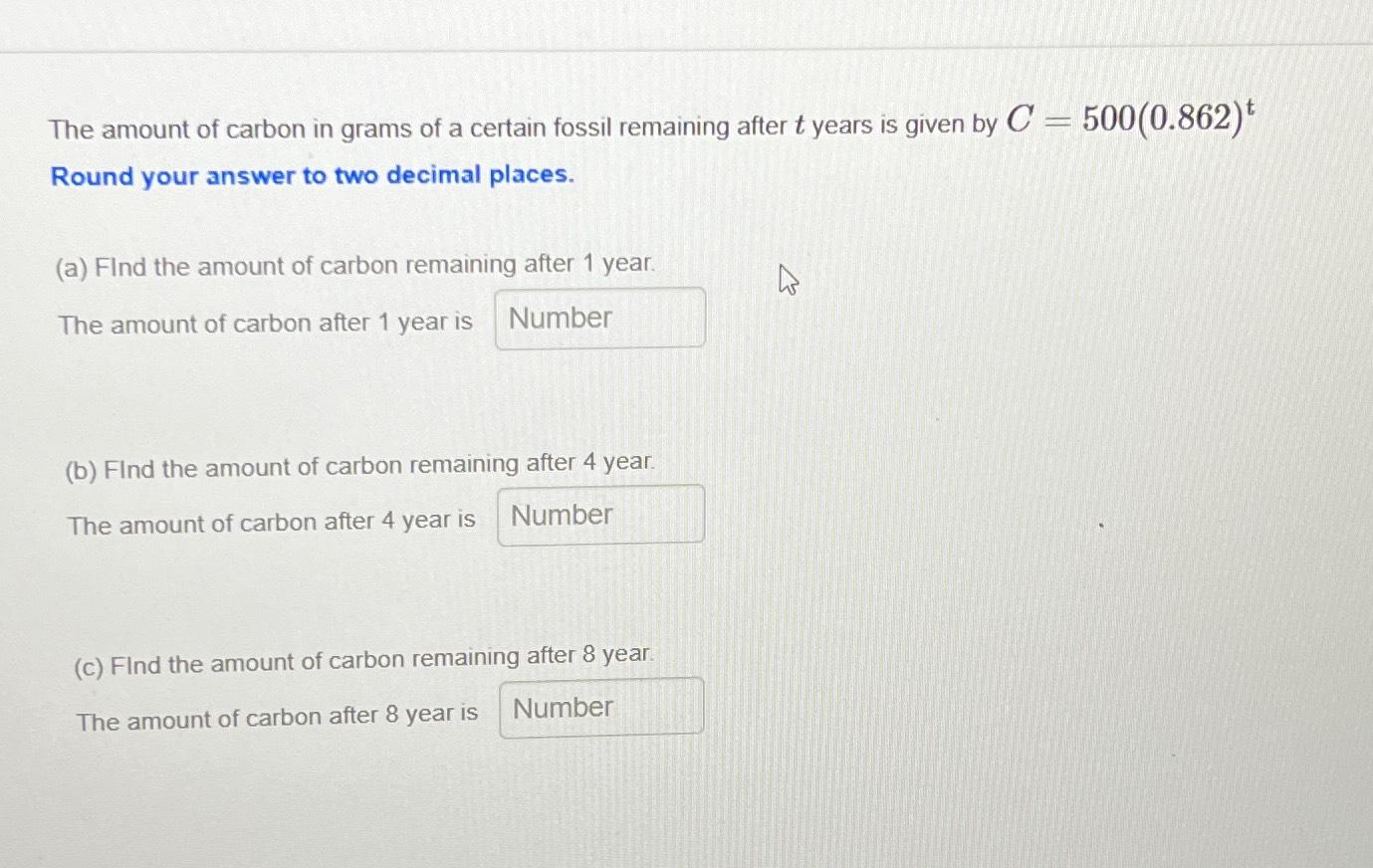 Solved The amount of carbon in grams of a certain fossil Chegg com