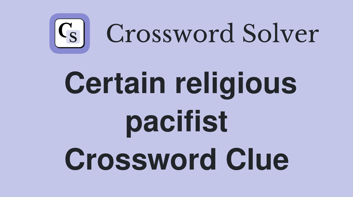 Certain religious pacifist Crossword Clue Answers Crossword Solver