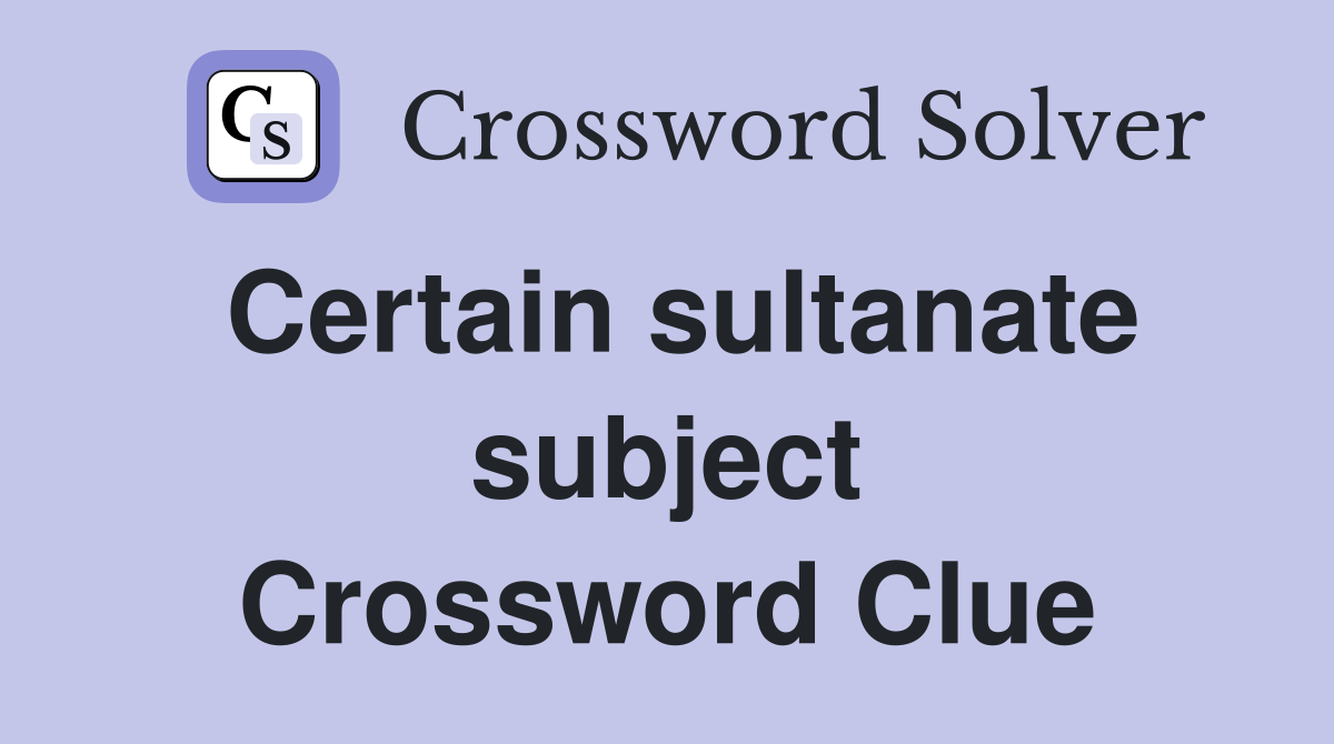 Certain sultanate subject Crossword Clue Answers Crossword Solver