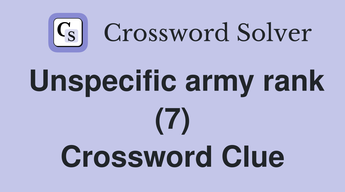 Unspecific army rank (7) Crossword Clue Answers Crossword Solver