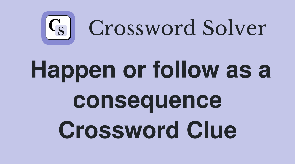 Happen or follow as a consequence Crossword Clue Answers Crossword