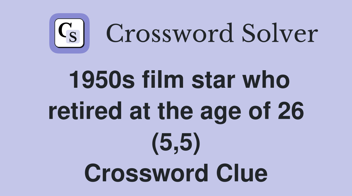 1950s film star who retired at the age of 26 (5 5) Crossword Clue