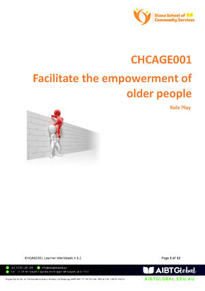 Chcdiv 001 Certificate III In Individual Support (Release 2 ) Aged
