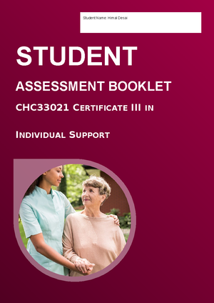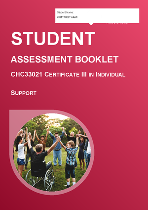 Assessment 1 NIET CHC33015 Certificate III in Individual Support