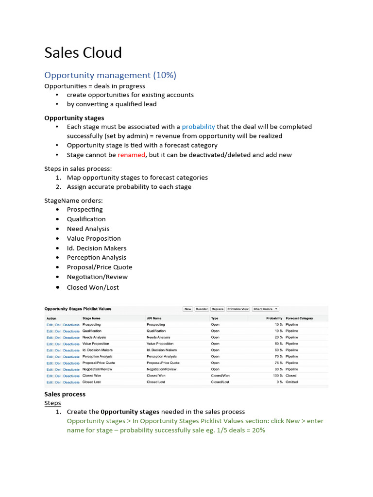 Sales Cloud Salesforce Summary Certificate PDF Forecasting
