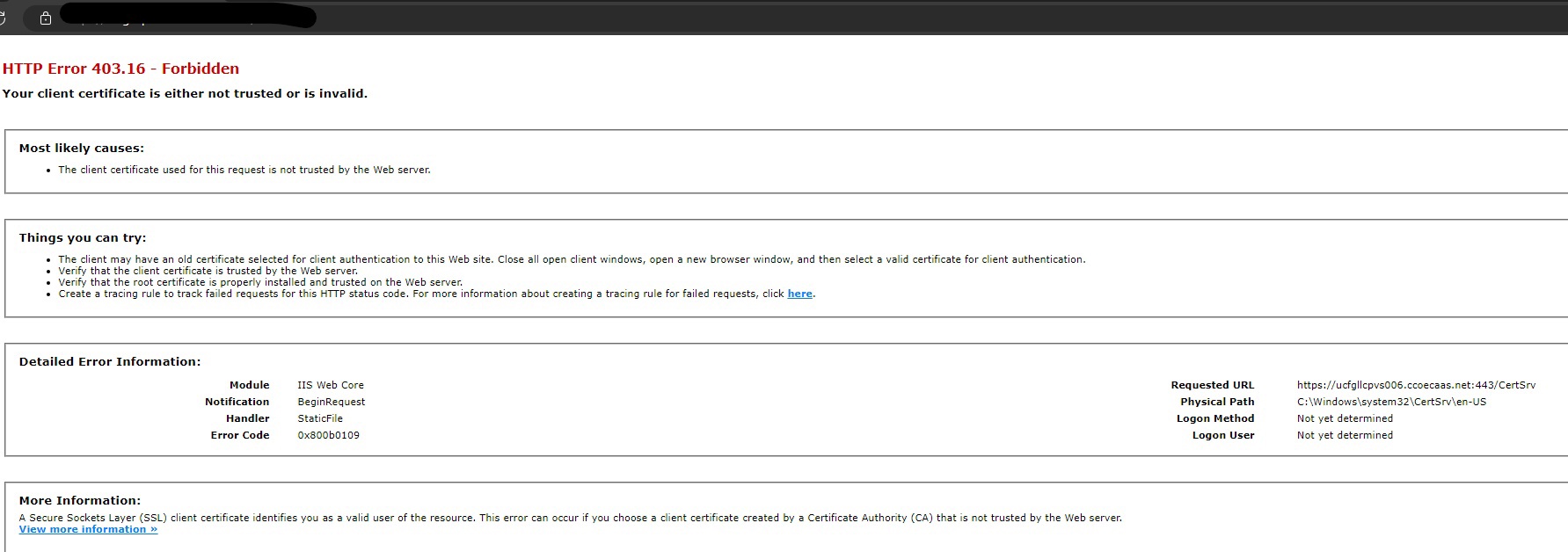Microsoft CA Certificate Authority Web Enrollment Access Issue
