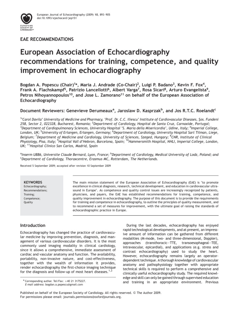 European Association of Echocardiography Recommendations For Training