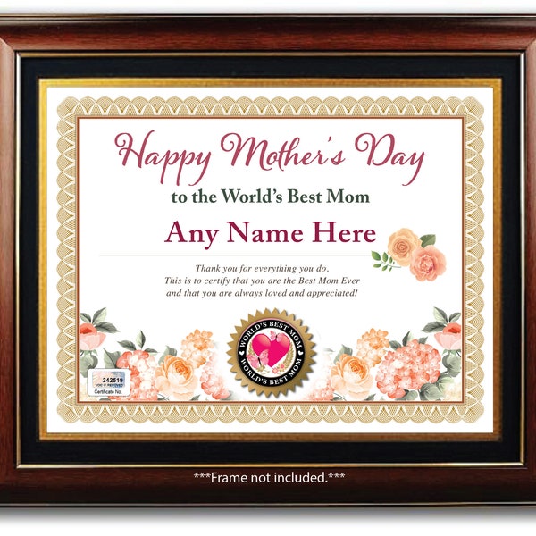Editable World #39 s Best Mom Certificate Pink Rose Customizable Unique G