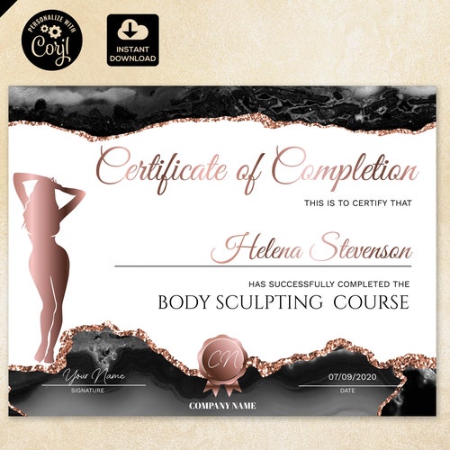 Body Sculpting Certificate Vol 1 Editable Certificate Template DIY
