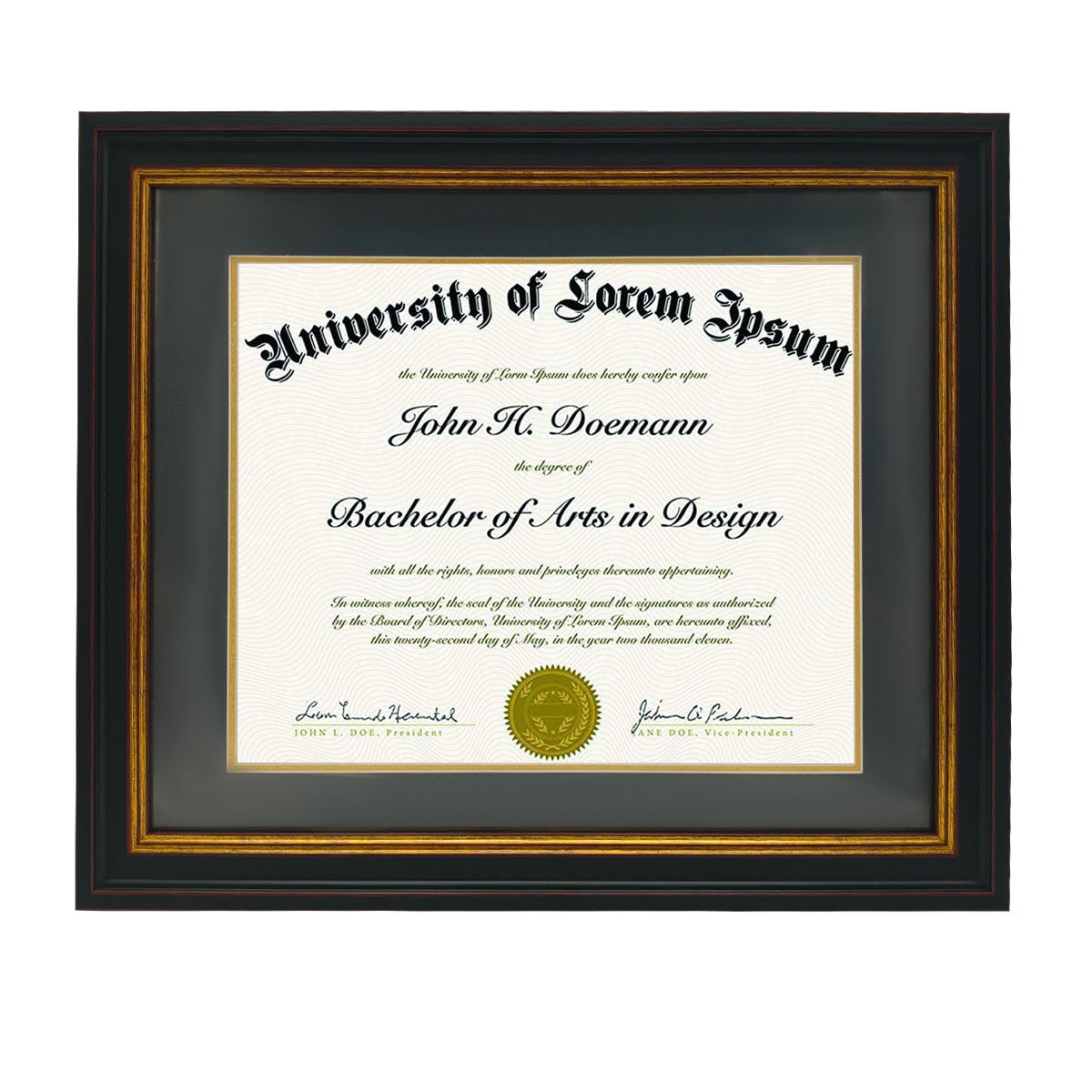 Certificate Frame Frame Diploma with Black over Gold Mat Document Frame