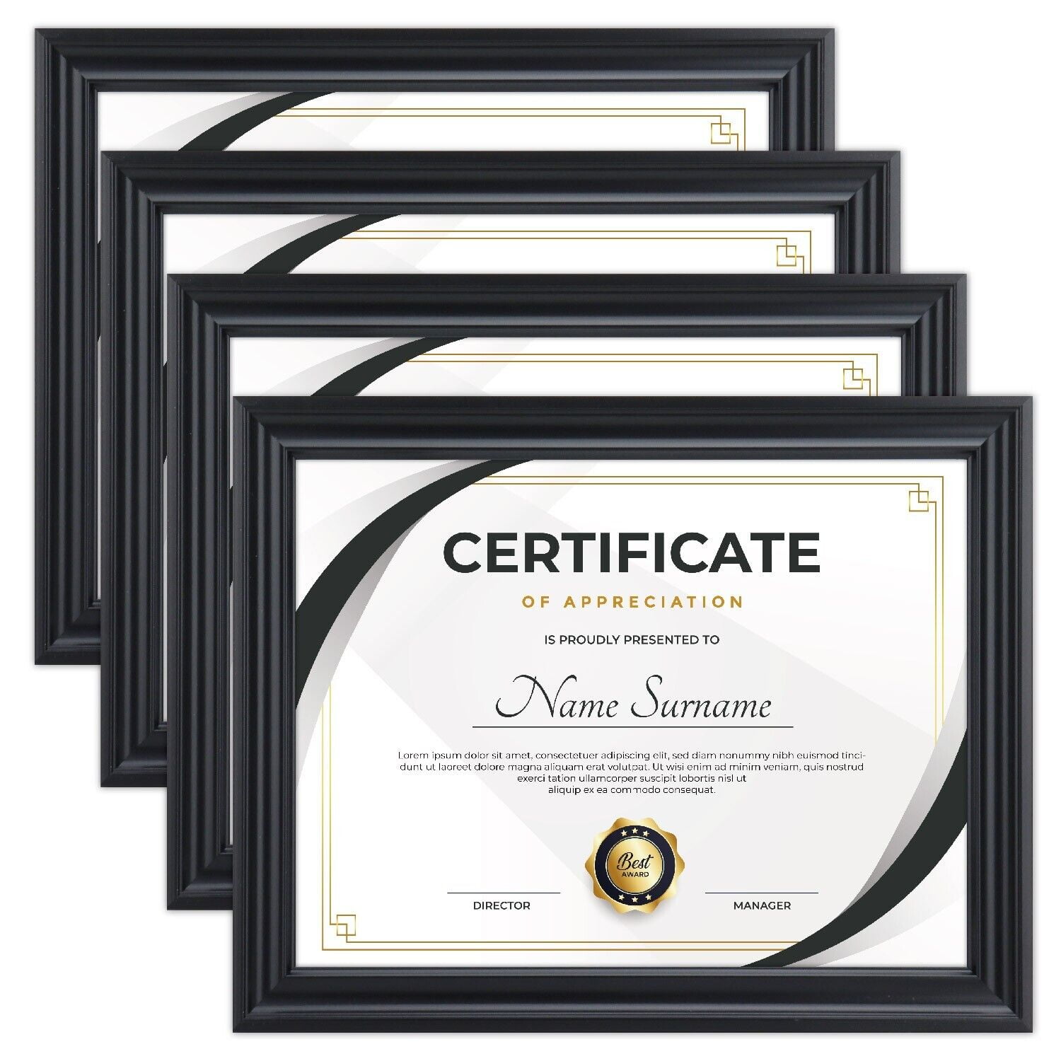 CreativePF 8UIL 11x14bk/gd Black Certificate Frame Displays 8 5 by 11