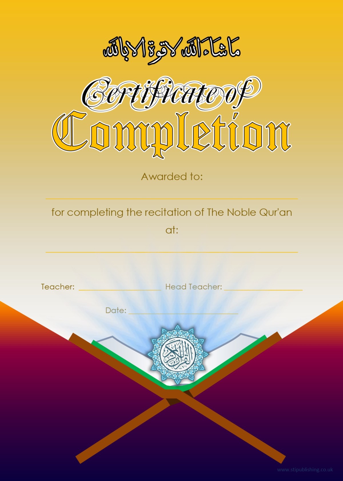 A4 Completion of Qura an Certificate (x10) STI Publishing