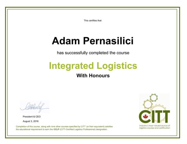 Integrated Logistics Certificate PPT